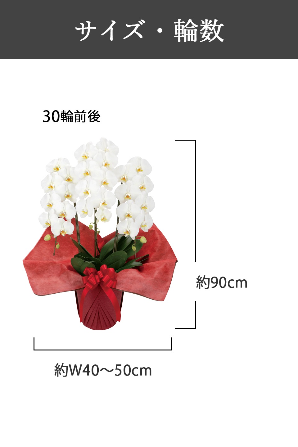 開店・開業・移転・就任をはじめとした、様々なビジネスシーンでのお祝い事にご用命いただきますのが、このスタンダード胡蝶蘭3本立ホワイトです。