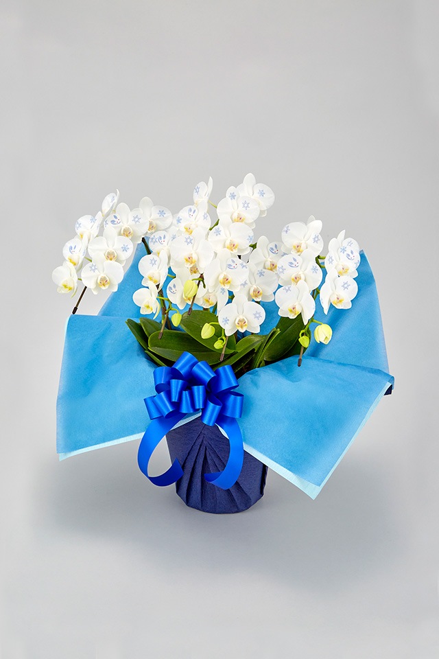 日本の四季折々の美しさを描いたワンランク上の胡蝶蘭粧蘭~四季シリーズ~【冬】では、優美な雪の結晶とやわらかそうな雪うさぎが可愛らしい冬の景色を思い起こさせてくれます。お手頃なサイズ感ながらも、特別な装いをまとったミディ化粧蘭は皆さんの特別な日を、より印象的で大切な思い出にします。